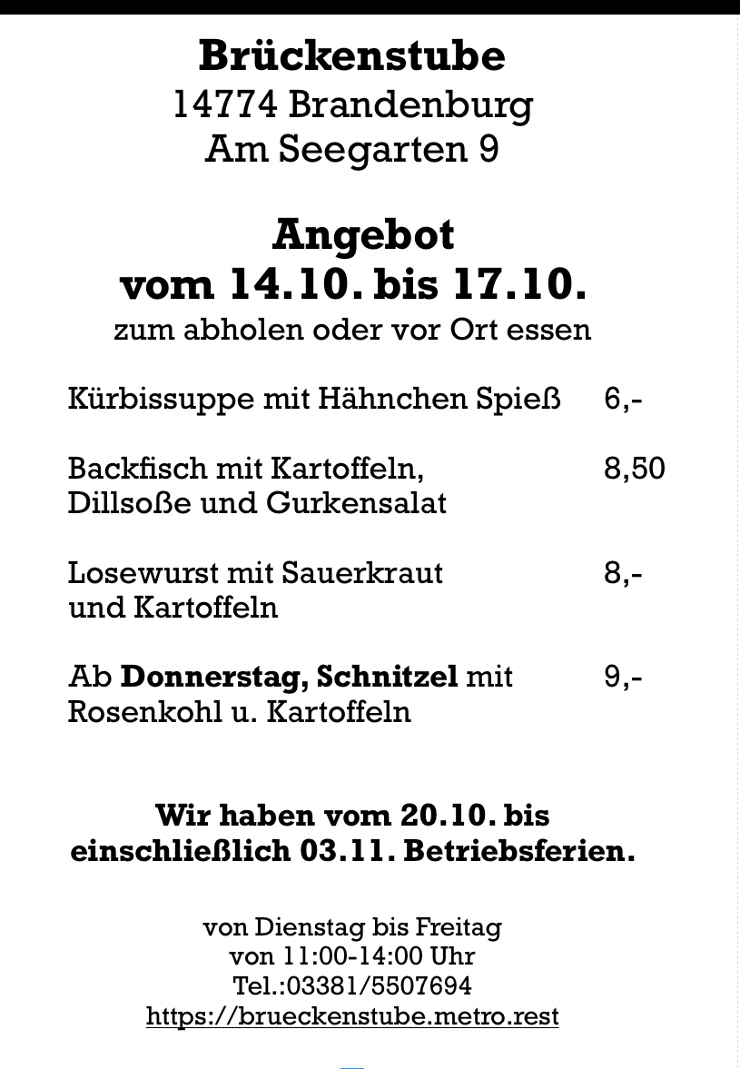 Betriebsferien 20.10.2025 – 03.11.2025 |